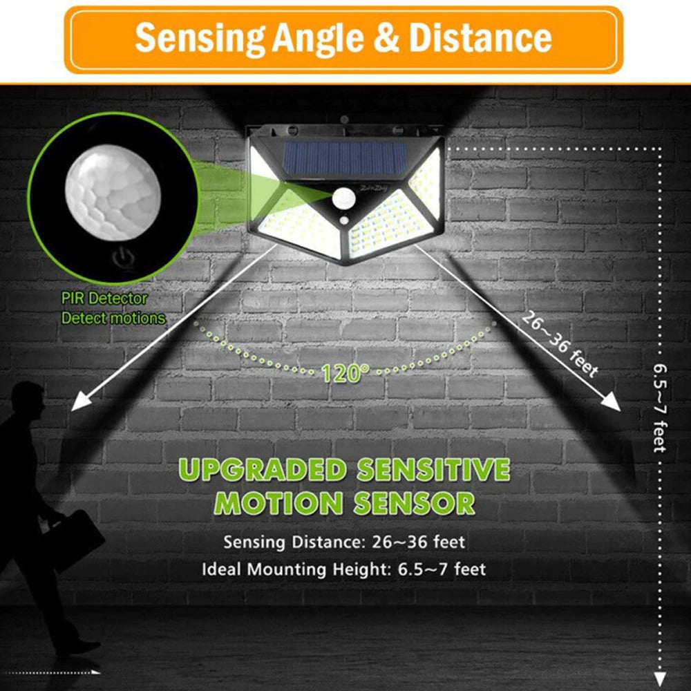 Applique murale à 100 LED avec capteur de mouvement PIR, imperméable conforme à la norme IP65, luminaire décoratif d'extérieur, 3 Modes d'éclairage, idéal pour un jardin.