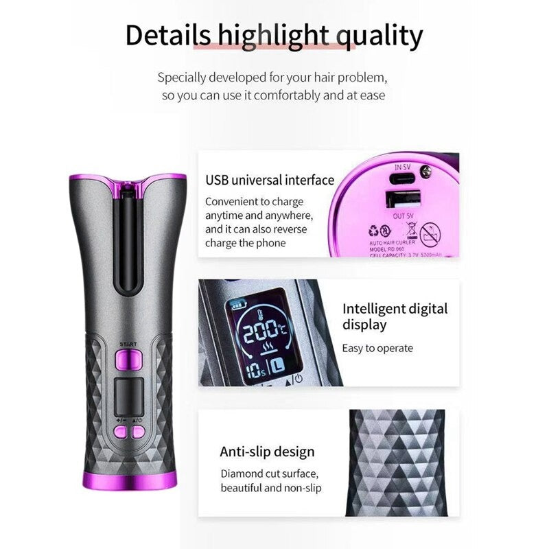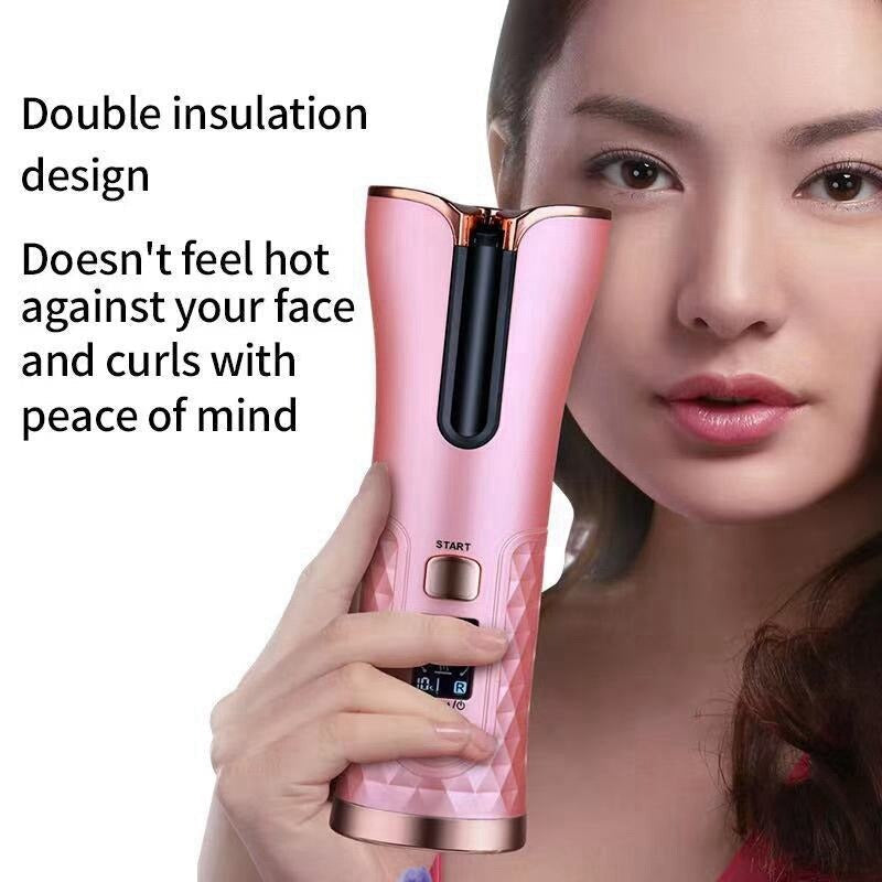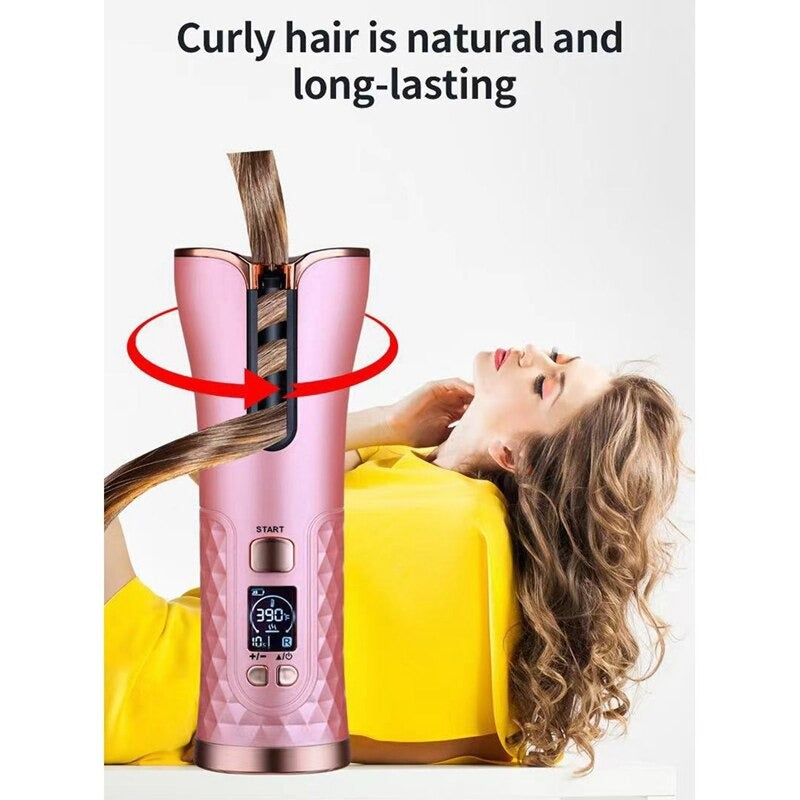 Bigoudi rotatif sans fil, Recharge USB, affichage LCD, fer à friser automatique pour voyage, maison.