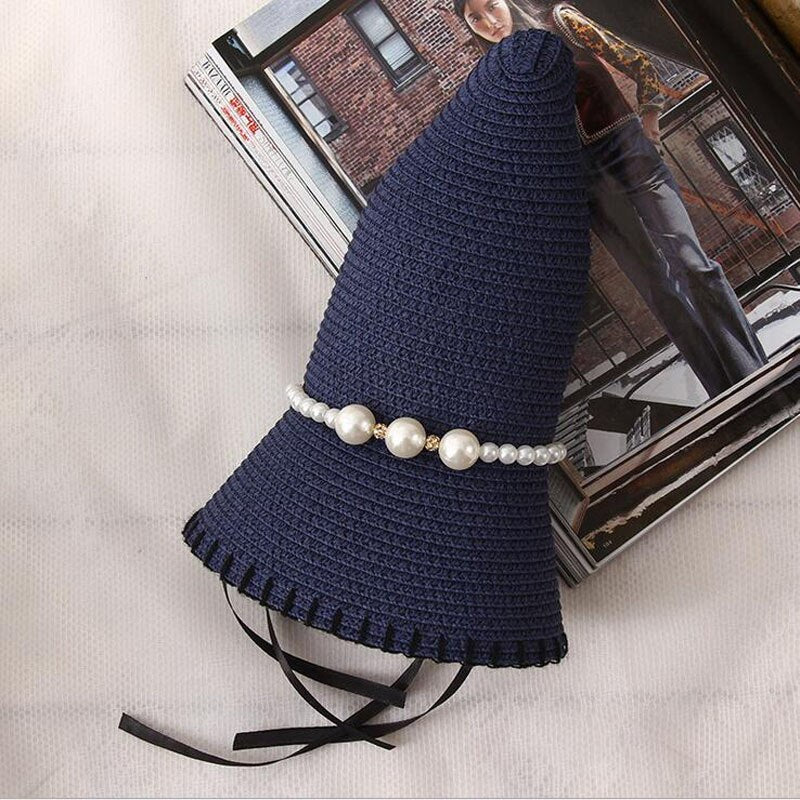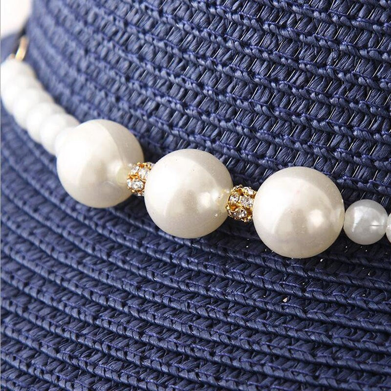 Chapeau de plage en paille pour femmes, nouvelle mode, Suture d'été, chapeaux de seau pour femmes, vacances fille perle, chapeau de soleil à large bord pour dames.