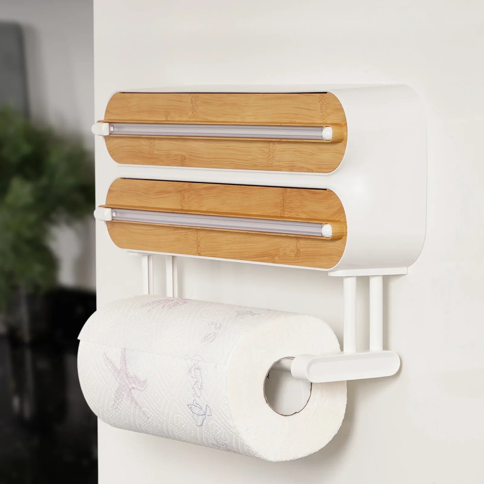 Transformez votre cuisine avec notre coupeur de papier adhésif multifonctionnel. En plus de couper précisément les feuilles, il les maintient en place grâce à son support mural magnétique. Utilisez-le également pour ranger vos papiers et films en toute simplicité. Facilitez vos tâches culinaires avec cet étagère pratique.
