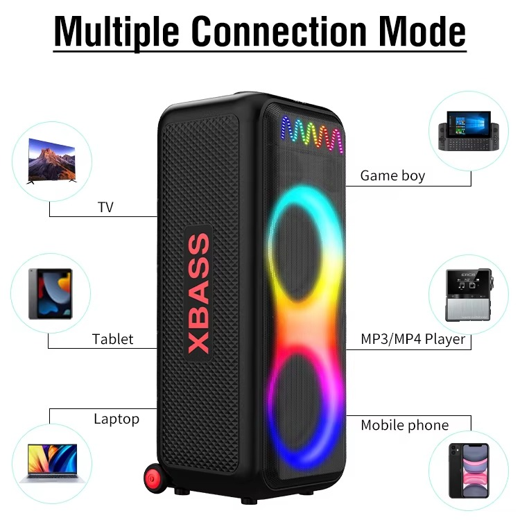 Apportez l'énergie de la fête partout où vous allez avec le haut-parleur Bluetooth sans fil ZQS10212 OEM Party ! Ce système audio puissant de 120W est conçu pour offrir une performance sonore de haute qualité, même en extérieur. Avec ses haut-parleurs de 2 x 10 pouces, ses basses profondes et sa connectivité Bluetooth sans fil, il est parfait pour animer vos événements, que ce soit à la maison, en extérieur ou lors de vos sorties entre amis.
