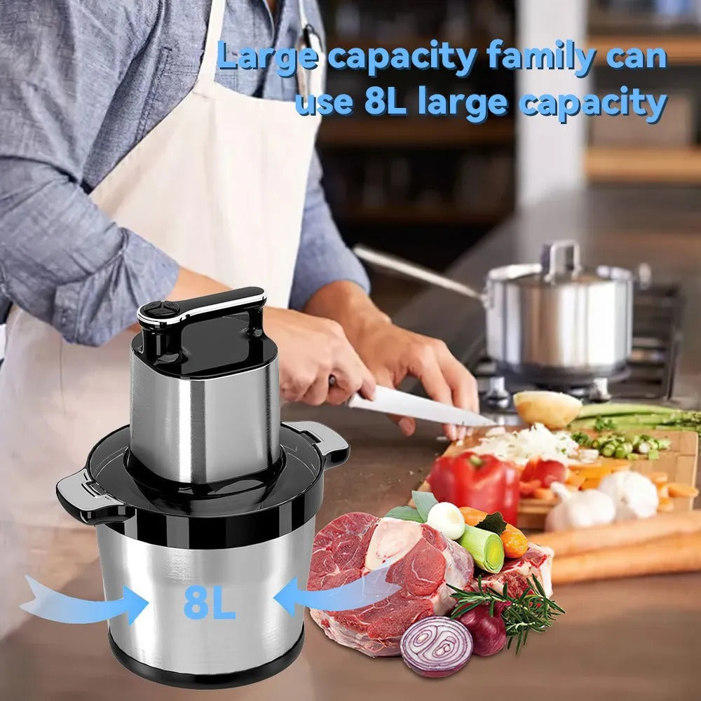 Ce hachoir à viande électrique en acier inoxydable est parfait pour la cuisine commerciale et domestique. Avec une capacité de 8L, cette machine permet de transformer la viande cassée en un produit fini de qualité supérieure. Facile à utiliser et à nettoyer, il vous fera gagner du temps et de l'argent tout en ajoutant de la qualité à vos préparations de viande.