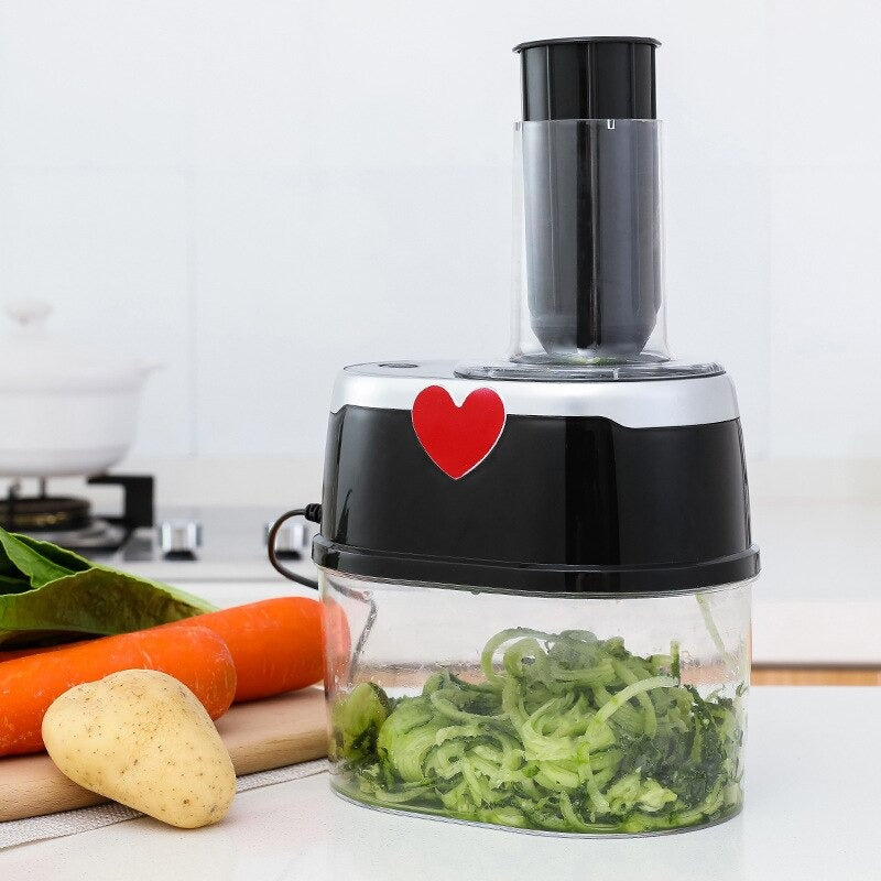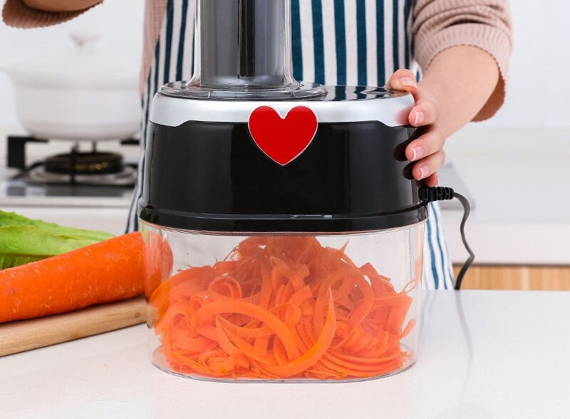 Coupe-fruits et légumes électrique multifonction, 110V/220V, pommes de terre, carottes, fromage, râpe, trancheur, 4 lames de coupe, salière.