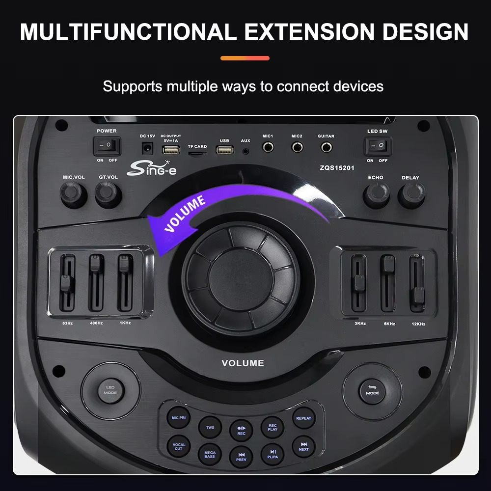 Son haute puissance et qualité professionnelle : Les haut-parleurs de 15 pouces associés au subwoofer intégré offrent un son dynamique et profond, parfait pour les soirées karaoké et les événements musicaux.