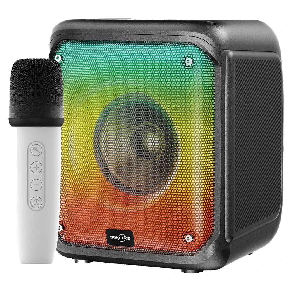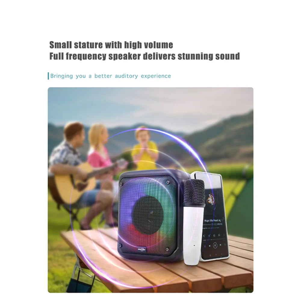 Ce générateur d'énergie solaire portable est équipé d'un micro système de son haut-parleur pour une expérience de cinéma maison grandiose. Le microphone stéréo sans fil vous permet de vous déplacer librement tout en profitant d'un son clair et puissant. Idéal pour les aventures en plein air et les événements en plein air.