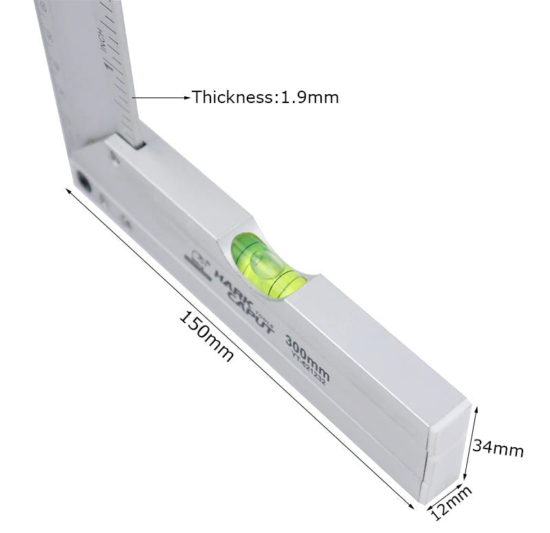 Règle d'angle de 90 degrés, jauge de marquage carrée en alliage d'aluminium, rapporteur avec niveau à bulle pour outils de mesure de charpentier.