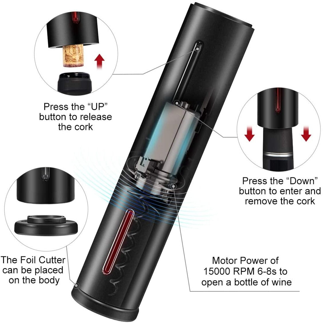 En appuyant simplement sur les boutons «bas» et «haut», ce puissant ouvreur retirera le bouchon en 7 secondes sans tracas.