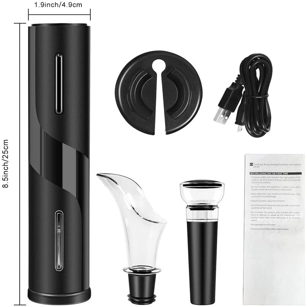 Ouvre-bouteille de vin électrique 4 en 1 rechargeable USB, tire-bouchon automatique pour vin rouge, coupe-feuille, aérateur, ensemble de verseurs.