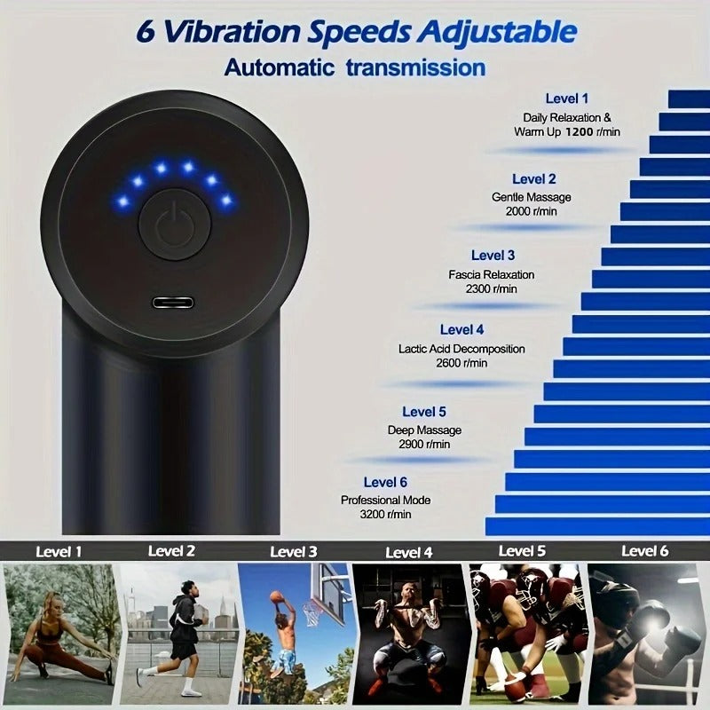 Détendez-vous en profondeur avec le pistolet de massage portable. Ses 6 vitesses et sa technologie de vibrations ciblées soulagent les tensions musculaires pour un massage efficace du cou et du dos. Parfait pour les athlètes et l'automassage à la maison, pour un corps détendu en 2024.