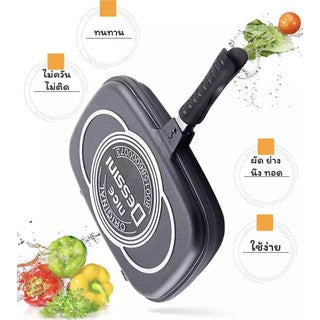 La Poêle à double face Dessini a une Bague d’étanchéité en silicone: bague d’étanchéité en silicone de qualité alimentaire, ferme efficacement le corps, empêche l’utilisation de l’huile, débordement de suie, retourne le corps pour éviter les fuites.