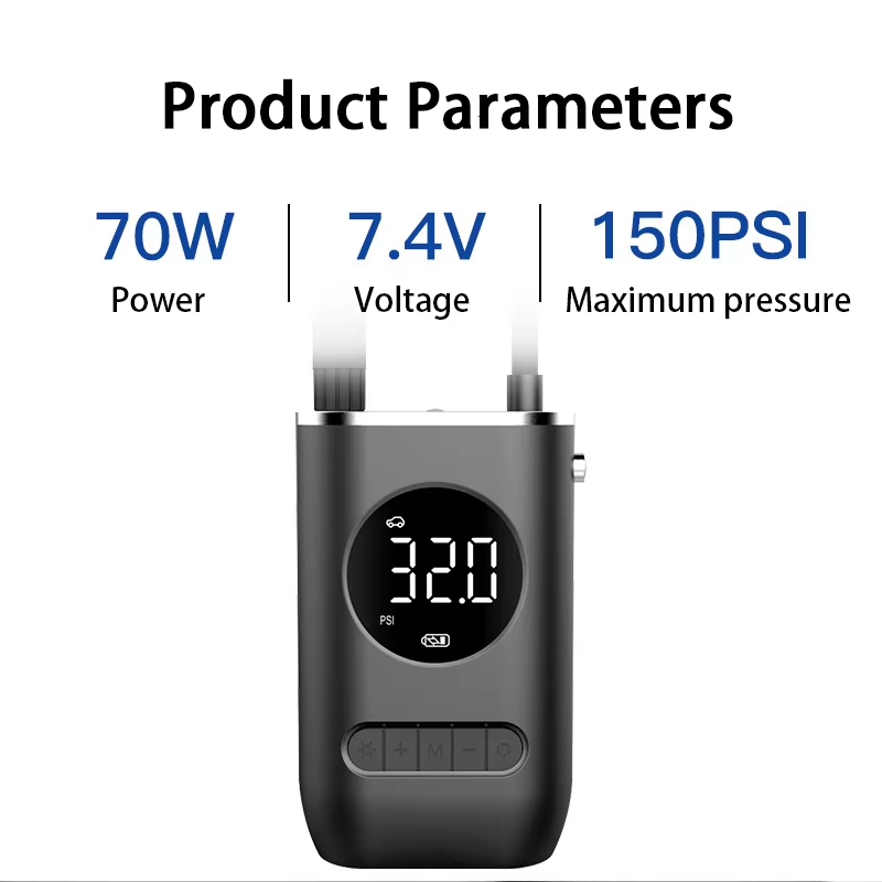 Ne tombez plus jamais à plat avec notre pompe à air automatique portable de nouvelle génération ! Conçue pour gonfler les pneus de voiture, de vélo, de moto, mais aussi les ballons et autres équipements gonflables, cette pompe intelligente est l’outil indispensable à garder dans votre coffre ou sac à dos.