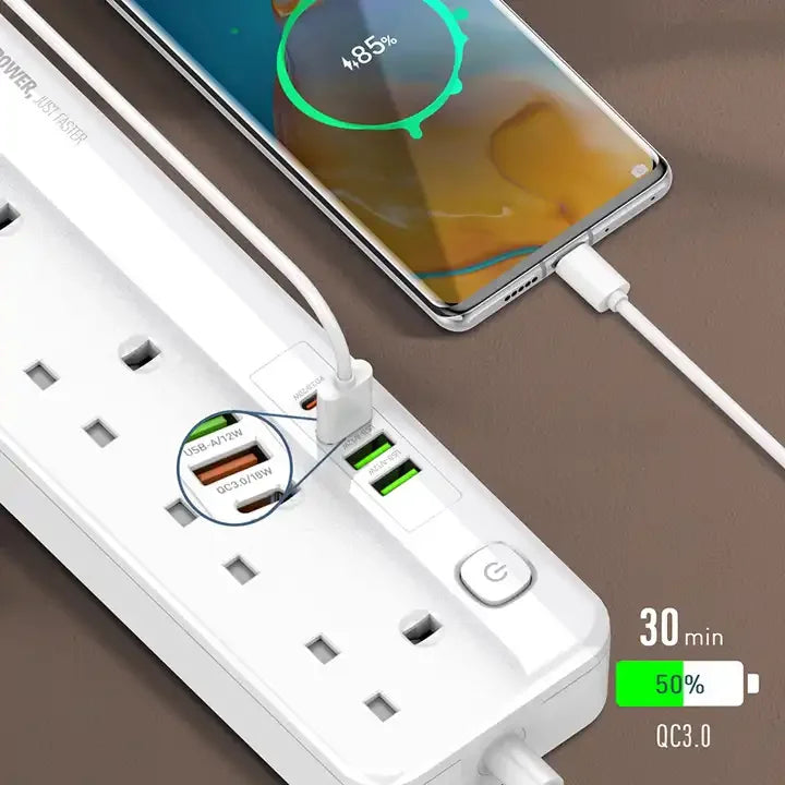 Cette nouvelle rallonge est idéale pour charger vos appareils électroniques en toute sécurité et efficacité. Avec 5 prises UK standard, un port USB PD20W et un port QC, cette prise universelle peut fournir jusqu'à 2500W de puissance et une charge rapide. Ne vous inquiétez plus de l'épuisement de la batterie lors de vos déplacements.