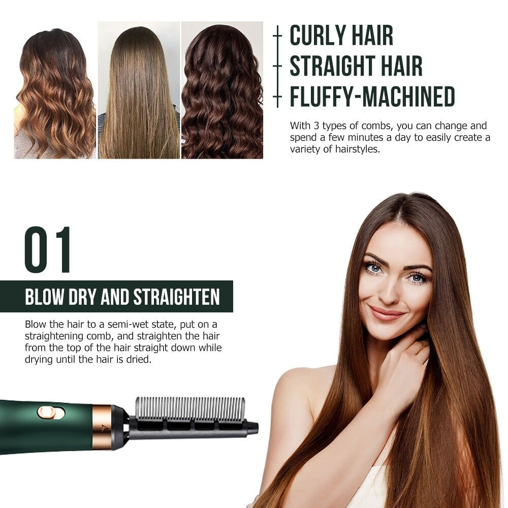 3 modes pour différents styles de cheveux : mode air chaud haute vitesse, mode air chaud basse vitesse et mode air froid haute vitesse, vous pouvez choisir celui qui convient à la coiffure spécifique. 3 brosses sont incluses à des fins différentes : curling, lissage et volumateur. Couleurs blanches, rouges, bleues et vertes au choix. La brosse coiffante pour sèche-cheveux adopte la technologie des ions négatifs, peut hydrater vos cheveux et réduire les dommages de vos cheveux, rendre vos cheveux lisses et sains.