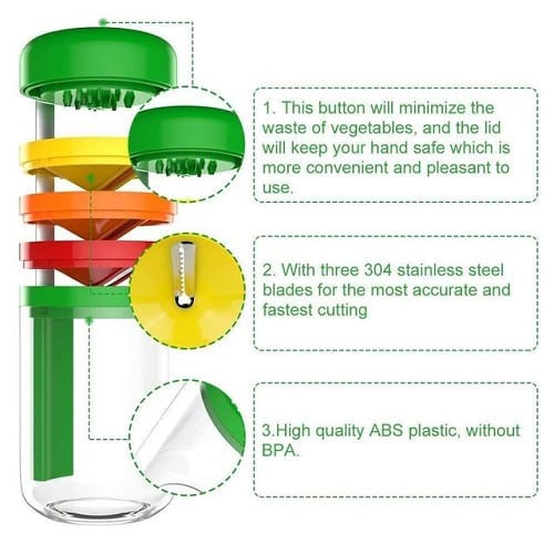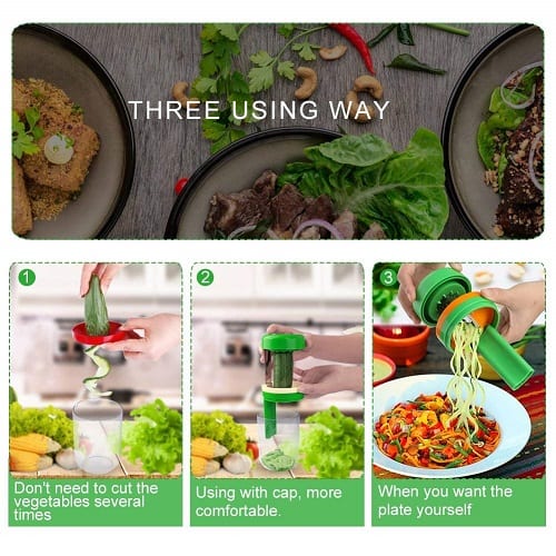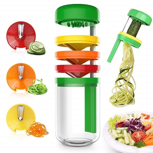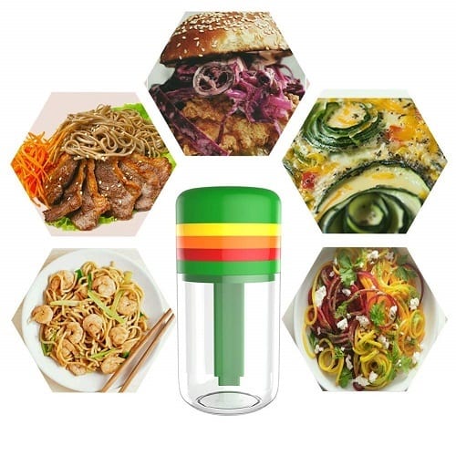 1. NOUVELLE CONCEPTION 2018: Notre trancheuse à légumes à spirale portative est livrée avec un récipient. Vous n'avez donc pas besoin de placer votre propre récipient dans le fond. Excellent pour préparer des repas de légumes sains.