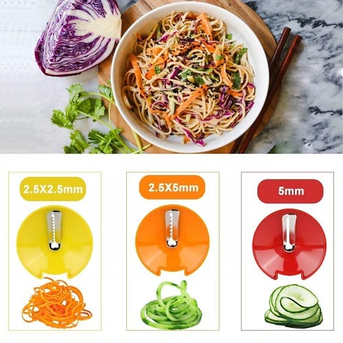 Notre zoodle maker est doté de 3 lames: ruban, spirale fine et spirale épaisse. Coupez-les facilement en tranches dans les légumes pour obtenir des spirales propres et parfaites. Convient pour les carottes, courgettes, concombres, courges, patates douces et plus.