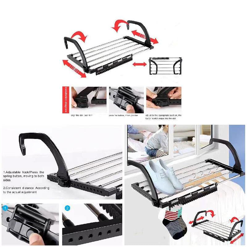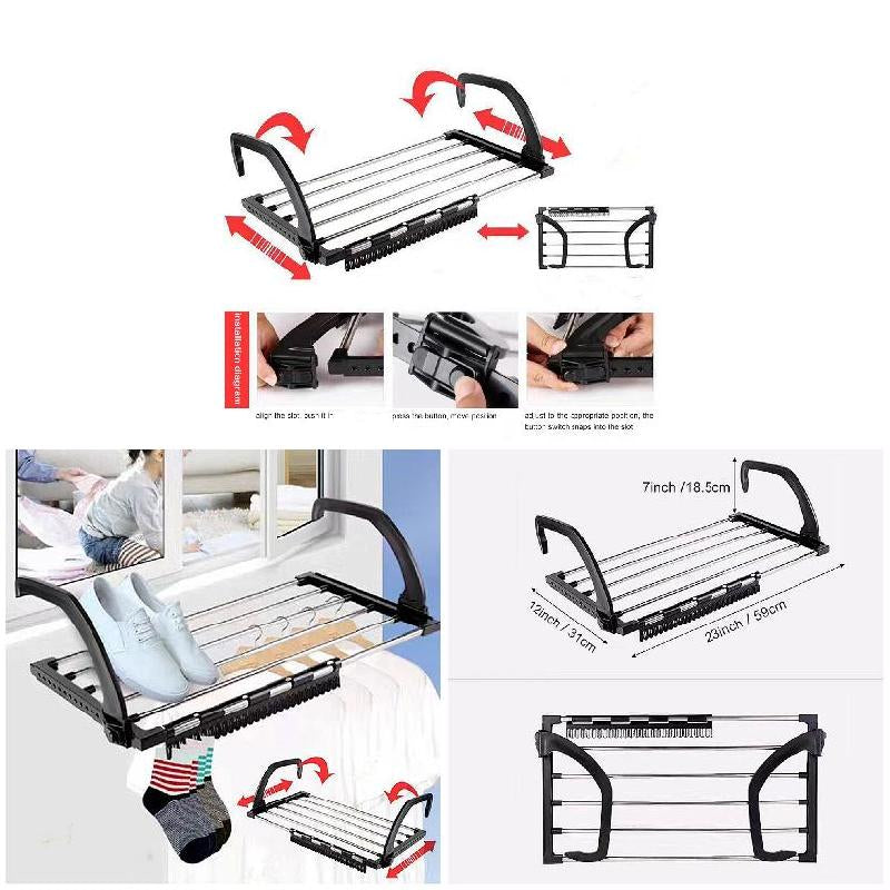 Support de séchage de serviettes pliant en acier inoxydable, supports suspendus pour vêtements avec Clips pour balcon rebord de fenêtre maison... .