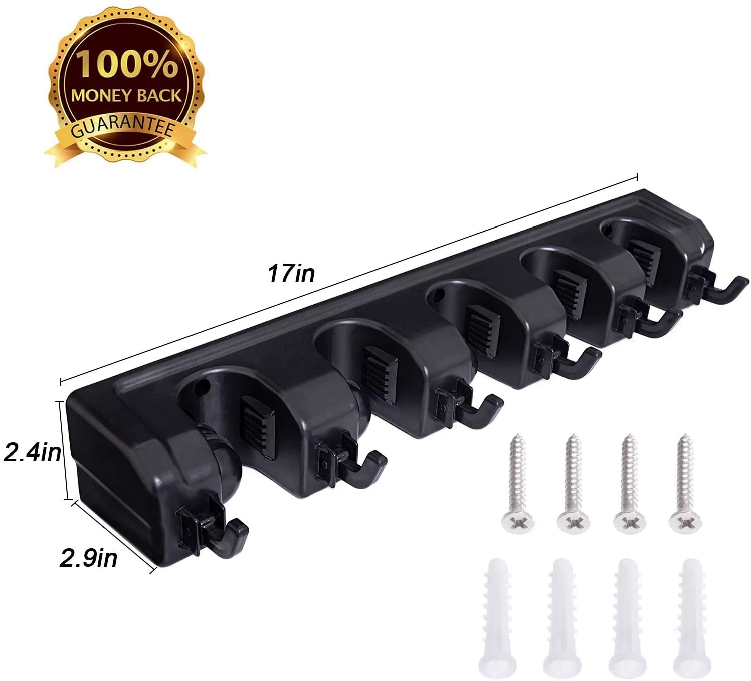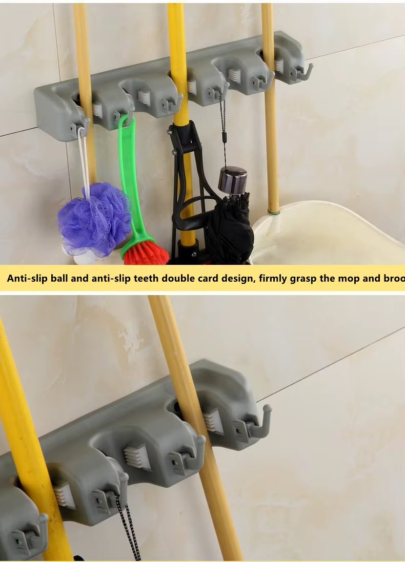 Équipé de pinces réglables avec revêtement antiglisse, le support maintient vos balais et outils fermement en place. Chaque emplacement peut supporter plusieurs kilos sans glisser, même en cas d’humidité.